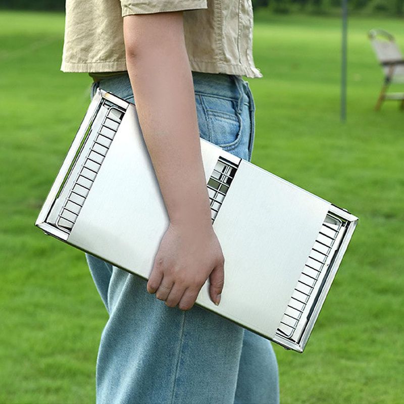 Förutom att anvÀndas som campinggrillutrustning Àr den hÀr grillen ocksÄ lÀmplig för utomhusgrillar, picknick, bakgÄrdsfester och andra instÀllningar, vilket gör utomhusaktiviteter roligare och ger anvÀndarna en utsökt grillupplevelse.