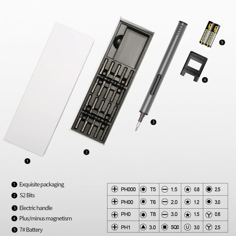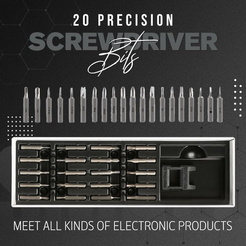 20 precisionsspetsar kan enkelt möta dina olika reparationsbehov. Perfekt för att demontera, modifiera och reparera alla typer av elektriska produkter och prylar.