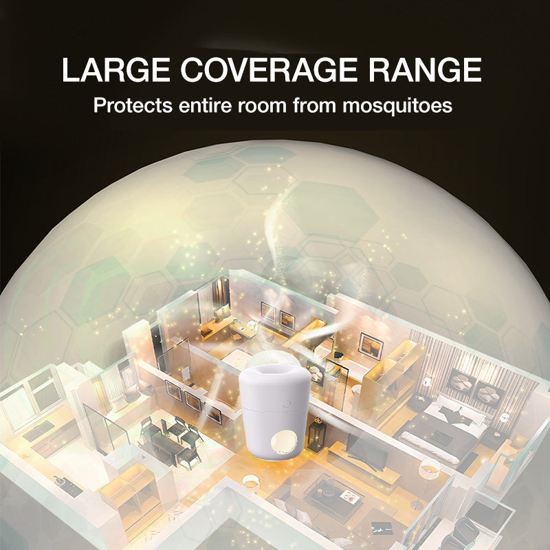 STOR TÄCKNINGSYTA – Effektiv i rum av olika storlek. Sprider myggmedlet jämnt och ger skydd i hela rummet mot insekter.