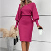 TIDSLÖS ENFÄRGAD DESIGN - Elegant Stickad Klänning 2-delat Set finns i en tidlös enfärgad nyans som går bortom säsongstrender, vilket gör den till ett klassiskt plagg i din garderob. Den enkla enfärgade designen möjliggör oändliga stylingmöjligheter, så att du kan mixa och matcha med olika accessoarer, skor och ytterkläder.