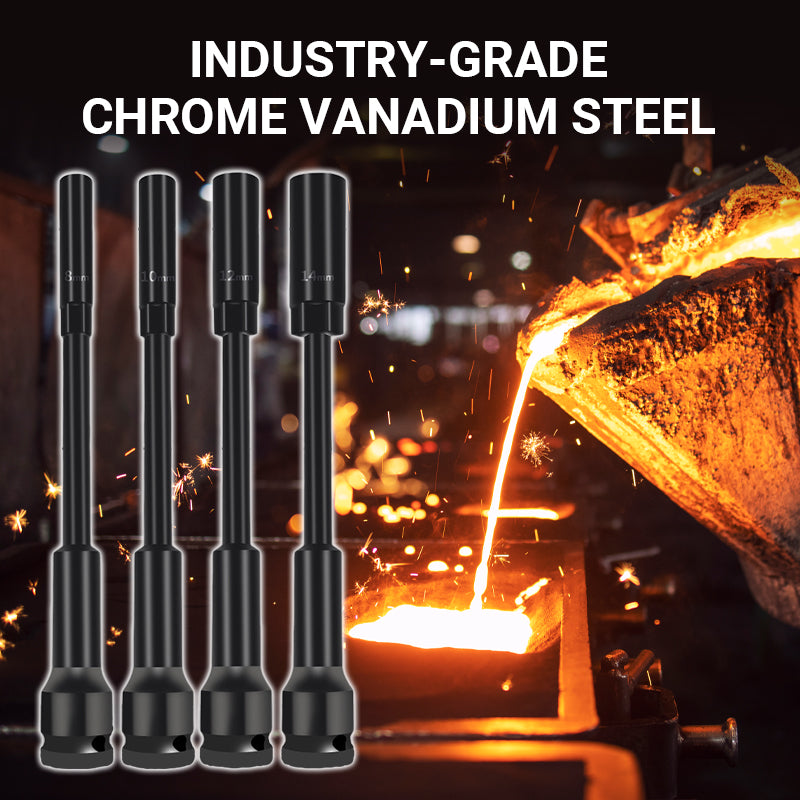 4 STORLEKSFLEXIBILITET – Hantera enkelt 8 mm, 10 mm, 12 mm eller 14 mm fästelement. Denna uppsättning uppfyller H8-H19-standarderna och passar för bilar, lastbilar, industriell utrustning och gör-det-själv-projekt. Sexkantigt skaft förhindrar att verktyget glider, även på rostiga eller rundade bultar.
