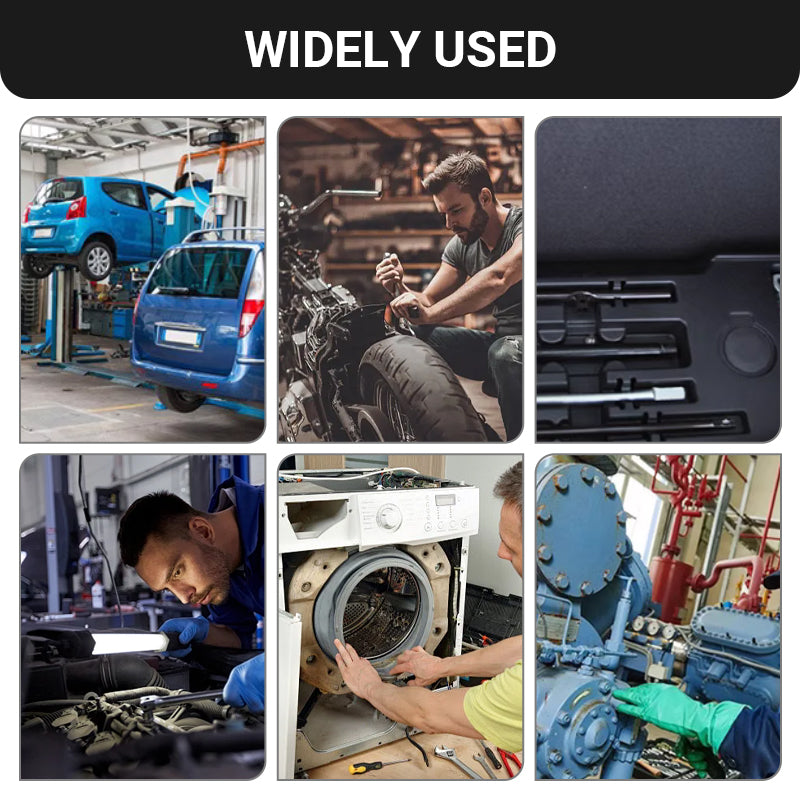 UNIVERSELLT PROFESSIONELLT BRUK – Tillförlitlig av auto-4S-butiker, maskinverkstäder och hemmekaniker. Kompakt nog att förvaras i handskfacket men robust nog för dagligt bruk i verkstadsmiljö. Reparation, underhåll eller uppgradering av fordon och utrustning – allt i ett tillförlitligt verktygssats.
