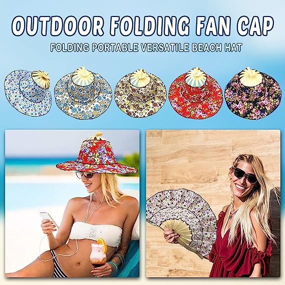 - ✅ Den kan även användas till hälften som fläkt. Vikbar och bärbar, lämplig för utomhusbruk. Hopfällbar handvevad fläkt, flera funktioner, du kan använda den som mössa när du behöver solskydd utomhus, och som handvevd fläkt inomhus.