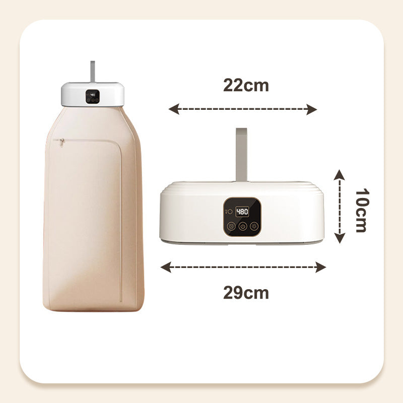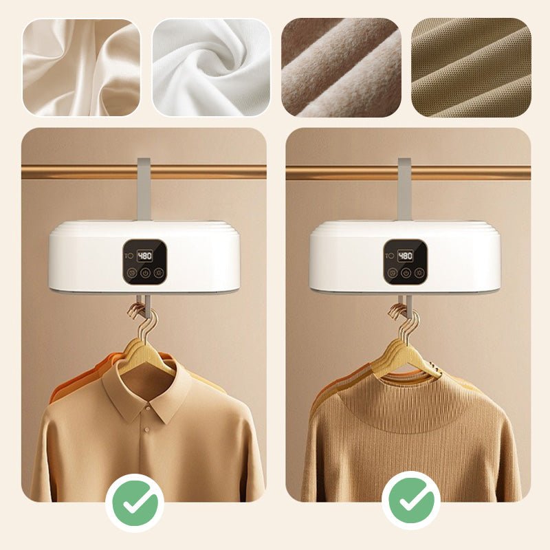 DESINFEKTION OCH LUKTBORTTAGNING: Denna portabel kompakt hopfällbar elektrisk klädtork har kraftfull desinfektionsteknologi som använder varmluft och blåljussterilisering för att effektivt eliminera bakterier, mikrober och dammkvalster, vilket förhindrar hudobehag.