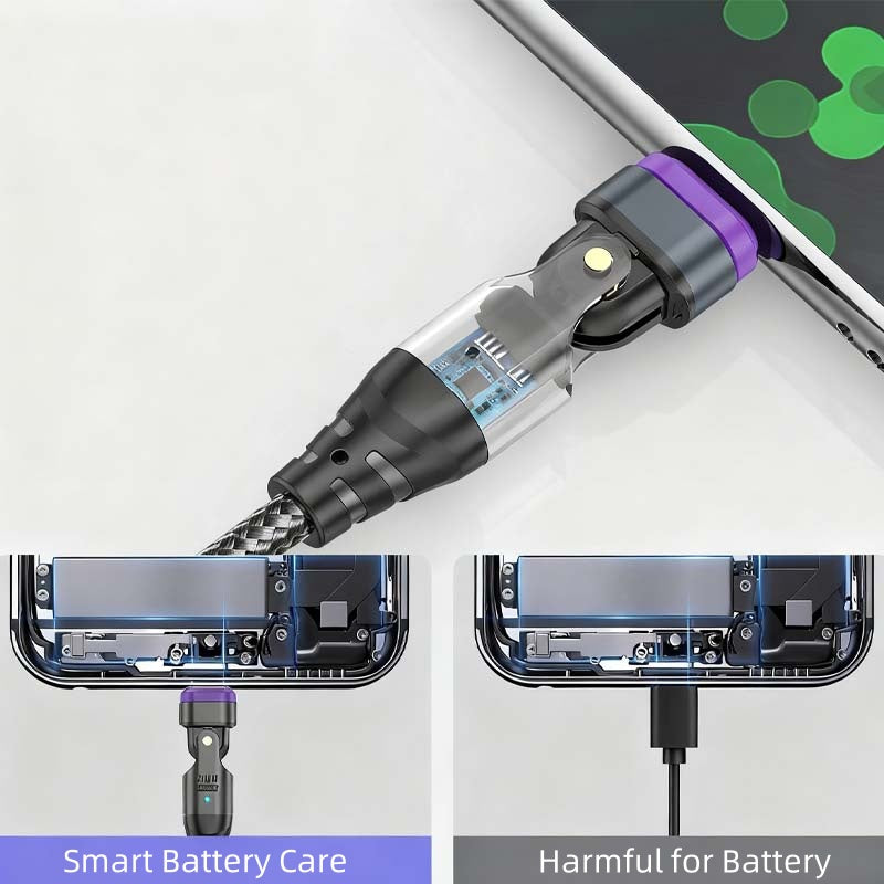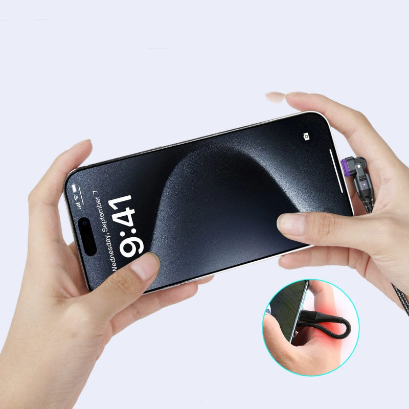 FLEXIBEL VINKELJUSTERING - Oavbruten gaming och videostreaming är nu möjligt tack vare kabelns unika, 180° roterbara design. Justera enkelt vinkeln för att undvika kabeltrassel och säkerställa ett bekvämt grepp samt en smidig upplevelse, särskilt under intensiva mobila spelsessioner eller långvarig mediekonsumtion. Njut av din enhet utan begränsningar.