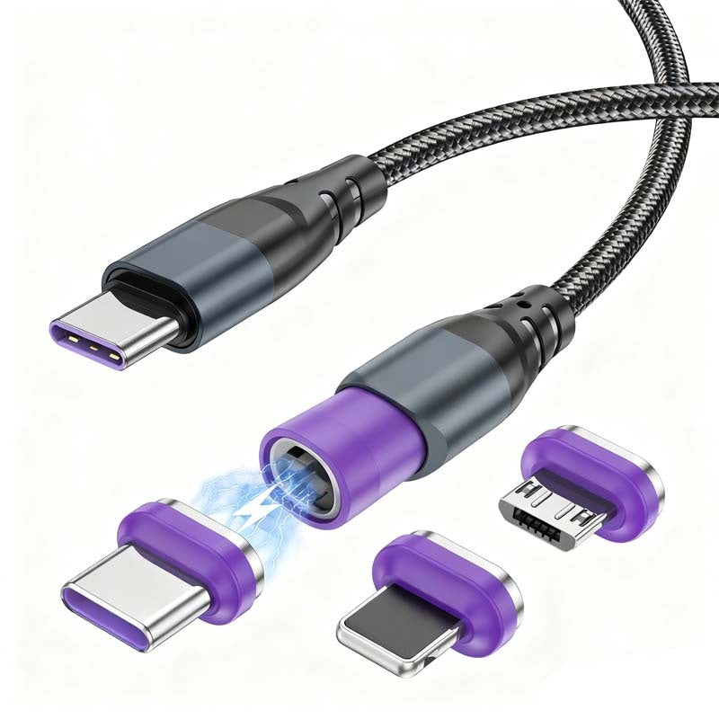 PÅLITLIG MAGNETISK ANSLUTNING - Utrustad med ett starkt magnethuvud erbjuder denna kabel en fast och säker anslutning som förhindrar oavsiktliga frånkopplingar. Det förstärkta gränssnittet säkerställer en tät passform, motstår glapp och upprätthåller optimal kontakt. Denna robusta magnetiska länk tillför även bekvämlighet, vilket möjliggör enkel och snabb anslutning och frånkoppling.