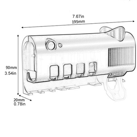 Tandborstehållare kan ta emot 8 tvättgurgla saker för att passa en familj att använda. Den främre raden av tandborstesterilisatorn kan hålla 4 tandborstar, och den andra raden kan hålla 1 tandtråd, 1 rakapparat och 1 tungskrapa. Designen av tandkrämsdispensern är också mycket mänsklig, du kan placera alla typer av tandkräm. -