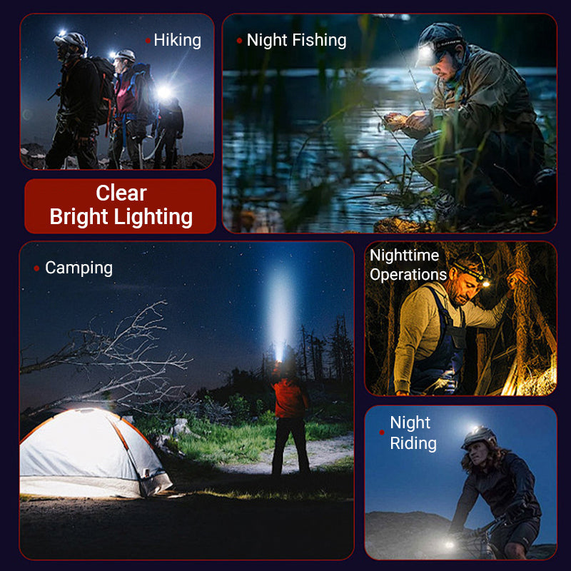 INTELLIGENT HÖG-LJUS LED-PANNLAMPA – Upplev oöverträffad synlighet med vår ultraljusstarka LED-lampa, designad för vandring, camping, cykling, nattfiske och nödsituationer. Den kraftfulla belysningen tränger igenom mörker upp till 200 meter och säkerställer trygghet under svaga ljusförhållanden. Den vattentåliga konstruktionen gör att du kan använda den utan bekymmer i regn eller tuffa miljöer.