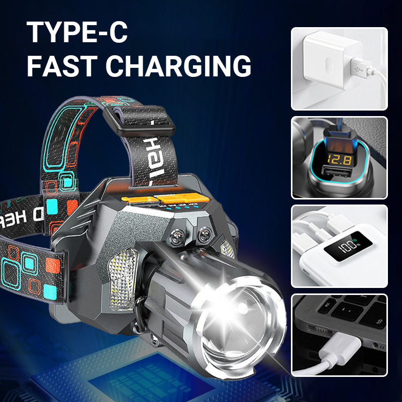 TYPE-C SNABBLADDNING & LÅNGVARIGT BATTERI – Utrustad med två litiumbatterier levererar denna huvudenhet 6–12 timmars kontinuerlig användning. Type-C snabbladdning stöder flera strömkällor, inklusive adaptrar, bil-laddare, powerbanks och bärbara datorer, vilket säkerställer att du aldrig blir utan ljus.