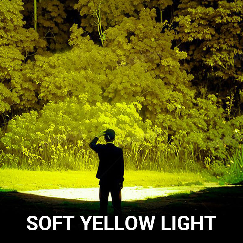 MJUKT GULT LJUS & RÖTT LJUS SOS-VARNING – Det mjuka gula ljusläget minskar ögonansträngning samtidigt som det bibehåller hög penetration för bekväm användning under natten. Den inbyggda röda ljus-SOS-varningen fungerar som nödsignal och ger ett extra lager av säkerhet under utomhusäventyr.