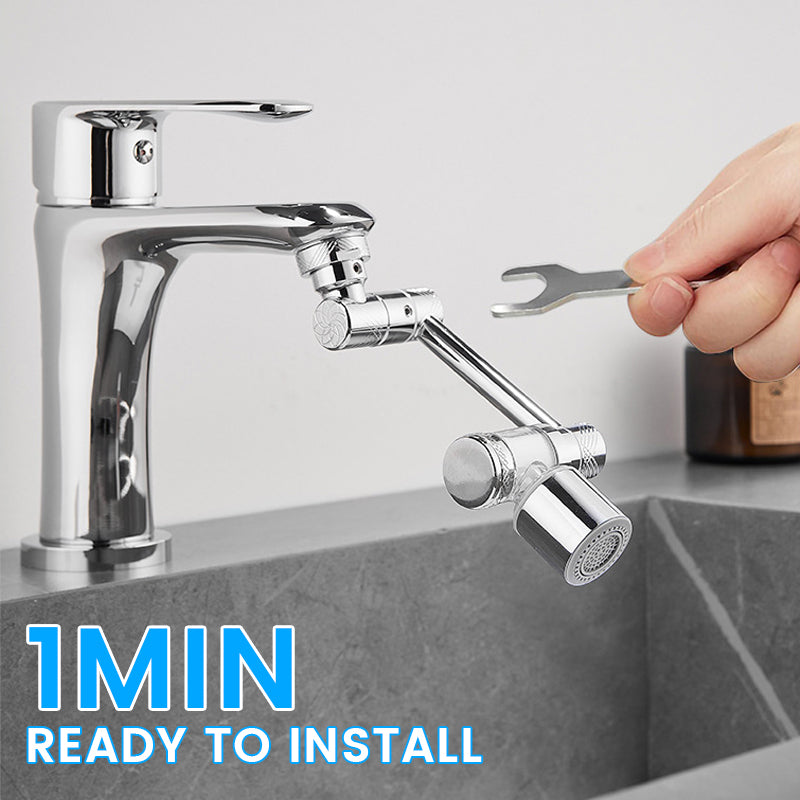 1080° SVÄNGBAR KRAN: Denna kranförlängare är designad med 3 leder och kan vridas 360 grader, böjas eller vikas för att nå varje hörn av diskbänken, vilket gör rengöringen enklare. Den vridbara fogen är förseglad med gummi, vilket gör den flexibel och helt läckagesäker.