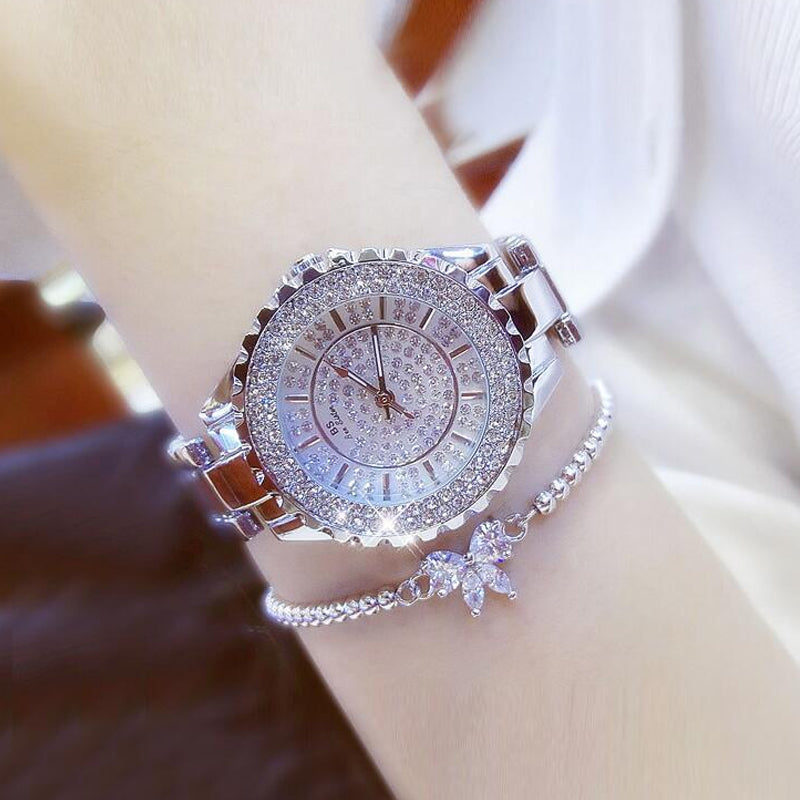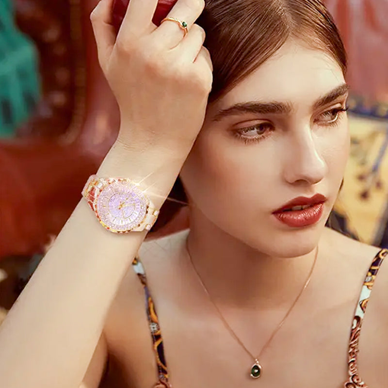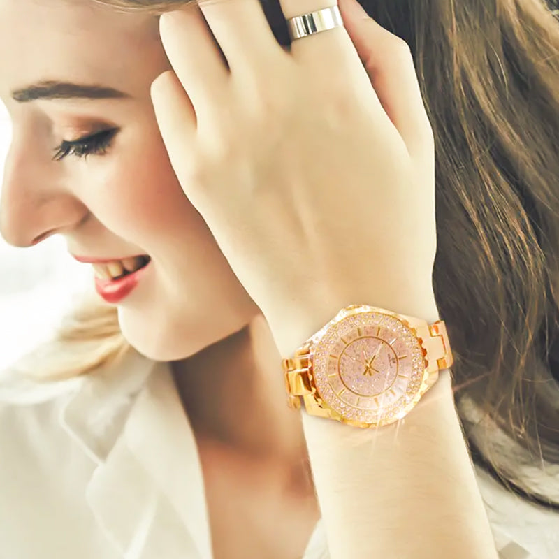 Lyxig Damklocka med Infattade Strass